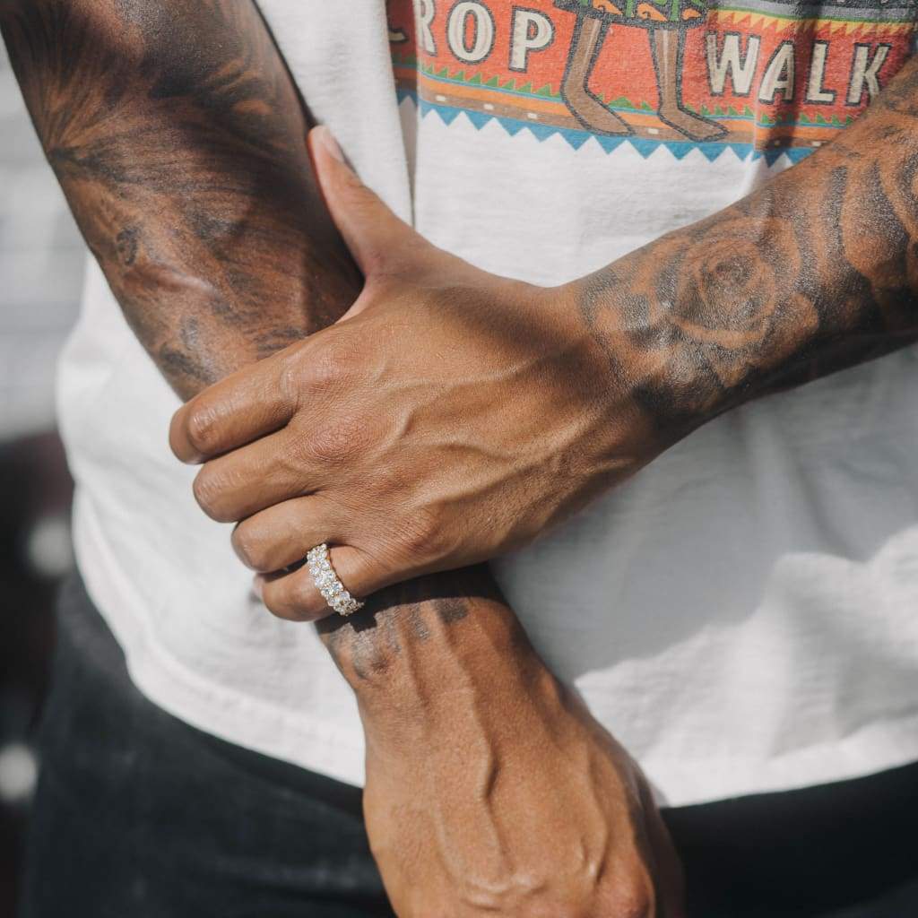 O Anel Tennis em Dupla Camada da TS Jewels exemplifica a simplicidade no seu melhor. As pedras colocadas à mão brilham como nenhuma outra e servem como a peça complementar perfeita para qualquer um dos nossos outros produtos cravejados.